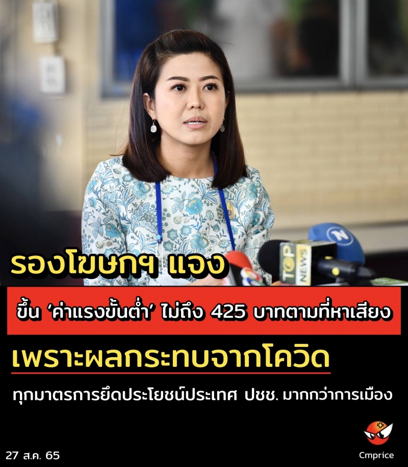 รองโฆษกรัฐบาล แจง ขึ้น ‘ค่าแรงขั้นต่ำ’ ไม่ถึง 425 บาทตามที่หาเสียง เพราะผลกระทบจากโควิด