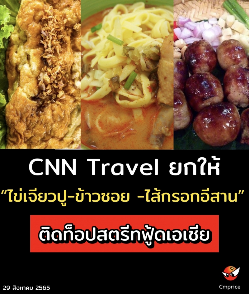 | • CNN Travel ยกให้ ไข่เจียวปู-ข้าวซอย -ไส้กรอกอีสาน ติดท็อปสตรีทฟู้ดเอเชีย |