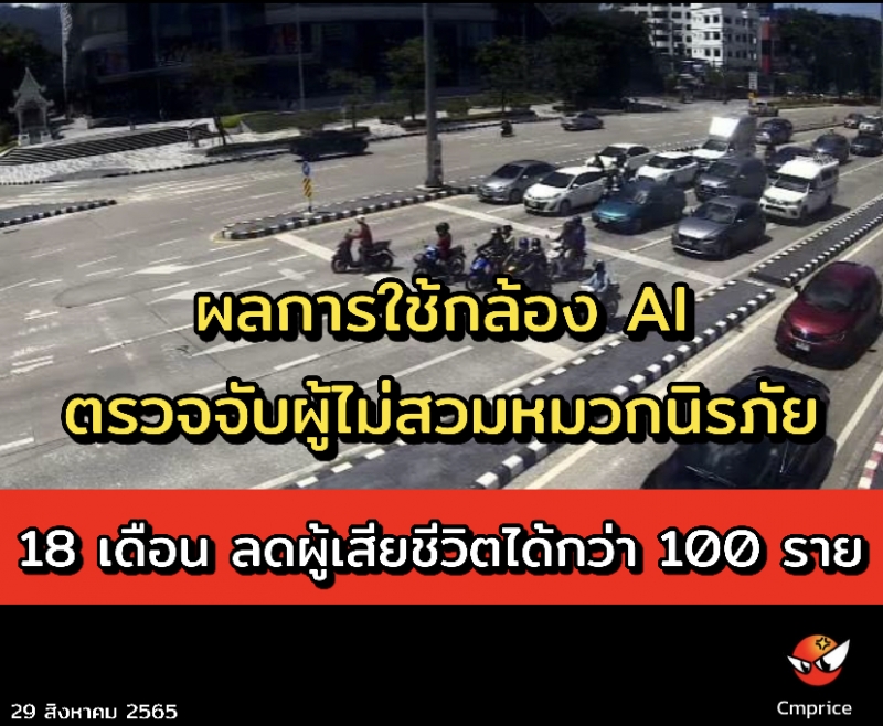 มูลนิธิ Safer Road ประเมินผลการใช้กล้อง AI อัตโนมัติ ตรวจจับผู้ไม่สวมหมวกนิรภัย พบ 18 เดือน สามารถลดอัตราการเสียชีวิตได้กว่า 100 ราย และมีอัตราการสวมหมวกนิรภัยเพิ่มขึ้นเฉลี่ยร้อยละ 80