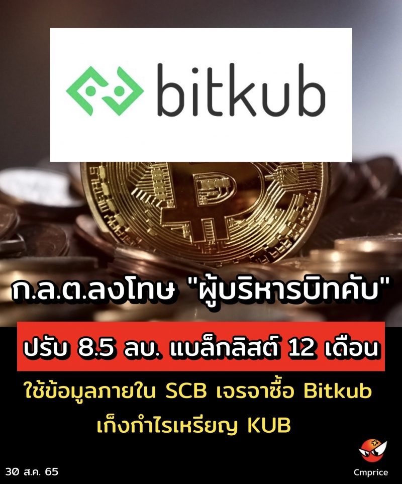 ก.ล.ต.ดำเนินการลงโทษทางแพ่ง "นายสำเร็จ วจนะเสถียร" CEO บิทคับ บล็อคเชน ซื้อเหรียญ KUB โดยอาศัยข้อมูลภายใน กรณีกลุ่ม SCB เจรจาซื้อขายหุ้น "บิทคับออนไลน์" สั่งปรับ 8.5 ล้านบาทพร้อมห้ามเป็นบอร์ด-ผู้บริหาร เป็นเวลา 12 เดือน