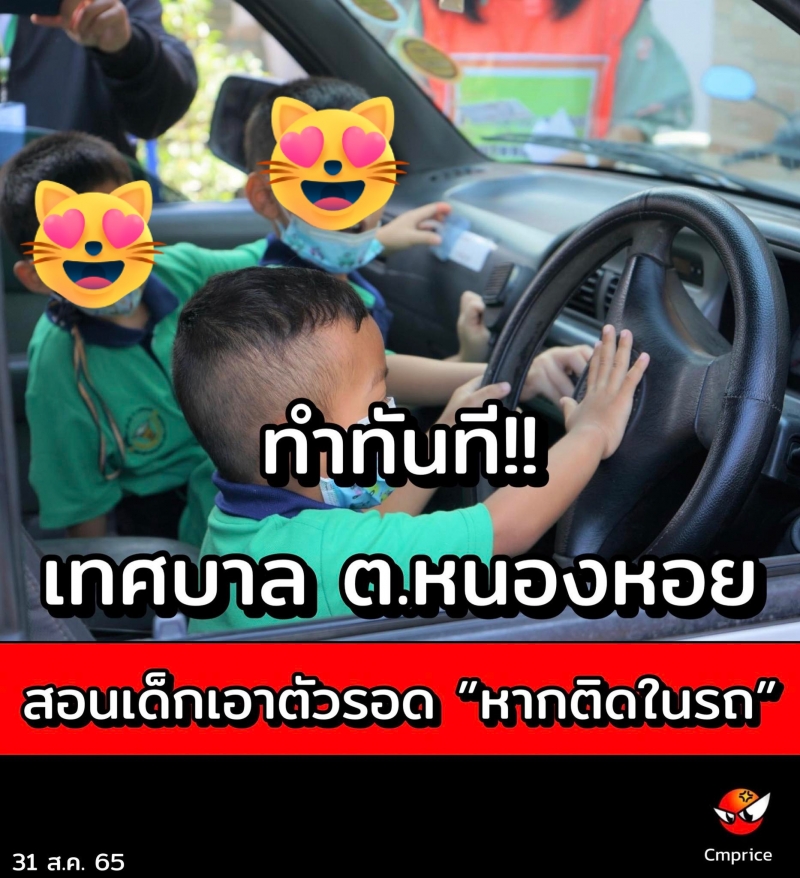 | • ทำทันที!! เทศบาล ต.หนองหอย สอนเด็กเอาตัวรอด หากติดในรถ |