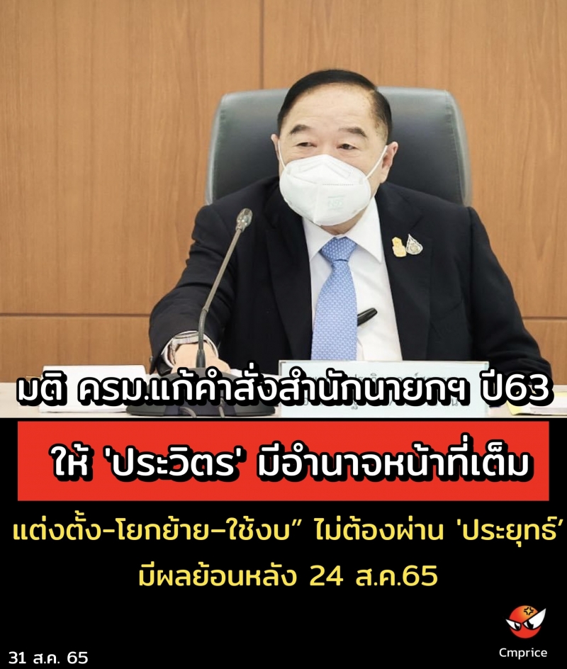 | • มติ ครม.แก้คำสั่งสำนักนายกฯ ปี63 ให้ 'ประวิตร' มีอำนาจหน้าที่เต็ม |