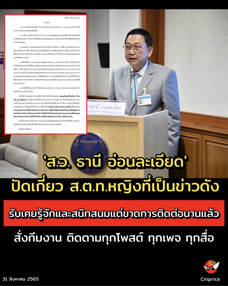 วันที่ 31 ส.ค. 2565 นาย ธานี อ่อนละเอียด สมาชิกวุฒิสภา ได้เผยแพร่เอกสาร คำแถลง ระบุว่า