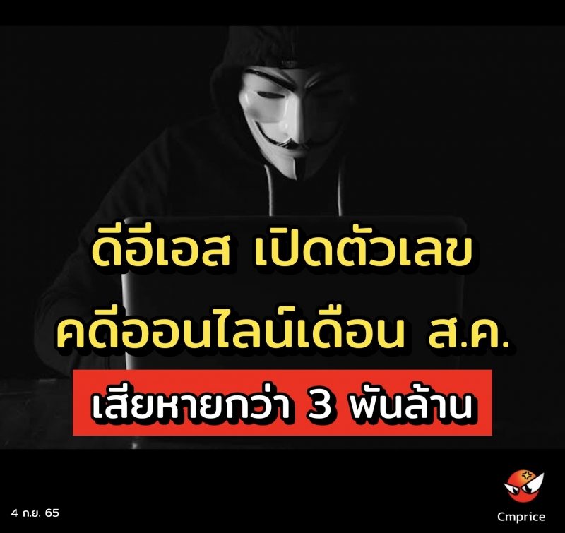 ดีอีเอส เปิดตัวเลขแจ้งความออนไลน์เดือน ส.ค. 65 พบเป็นคดีออนไลน์ 17,254 คดี มูลค่าความเสียหายรวมทะลุ 3.3 พันล้านบาท รุกอายัดบัญชีแล้ว 4,066 บัญชี