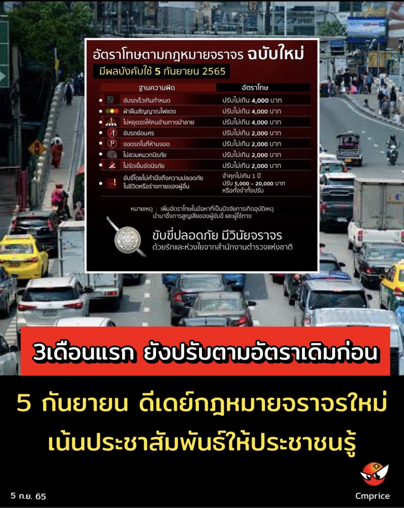 เมื่อวันที่ 5 กันยายน 2565 เวลา 10.00 น. ที่สำนักงานตำรวจแห่งชาติ พล.ต.อ.ปรีชา เจริญสหายานนท์ ที่ปรึกษาพิเศษ ตร. /รองผู้อำนวยการศูนย์บริหารงานจราจร สำนักงานตำรวจแห่งชาติ (ศจร.ตร.) เปิดเผยว่า ตร. ได้สั่งการให้ทุกหน่วยบังคับใช้กฎหมายจราจรฉบับใหม่ควบคู่กับการรณรงค์ประชาสัมพันธ์ให้ประชาชนทราบ