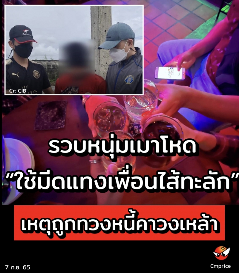 สอบสวนกลาง (CIB) รวบหนุ่มเมาโหดใช้มีดแทงเพื่อนไส้ทะลัก เหตุถูกทวงหนี้คาวงเหล้า