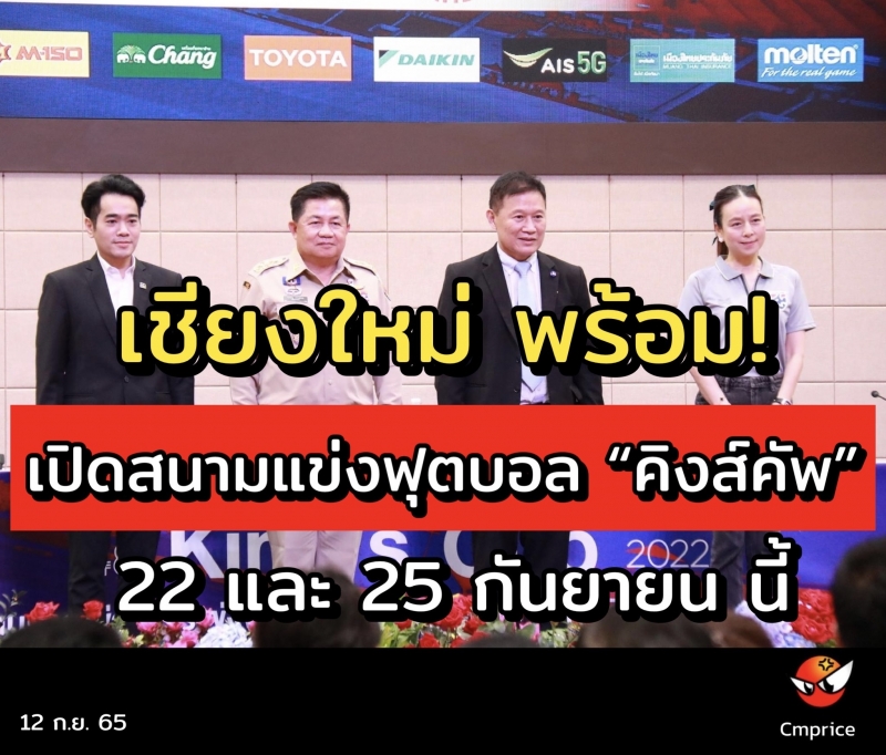 วันนี้ (12 ก.ย. 65) ที่ ห้องประชุมสภาองค์การบริหารส่วนจังหวัดเชียงใหม่ นายประจญ ปรัชญ์สกุล ผู้ว่าราชการจังหวัดเชียงใหม่ พร้อมด้วย นายพิชัย เลิศพงศ์อดิศร นายกองค์การบริหารส่วนจังหวัดเชียงใหม่ นายพาทิศ ศุภะพงษ์เลขาธิการสมาคมกีฬาฟุตบอลแห่งประเทศไทย และนางนวลพรรณ ล่ำซำ ผู้จัดการทีมฟุตบอลทีมชาติไทย ร่วมกันแถลงข่าวการแข่งขันฟุตบอลชิงถ้วยพระราชทาน "คิงส์คัพ" ครั้งที่ 48 ประจำปี 2565 ซึ่งสมาคมกีฬาฟุตบอลแห่งประเทศไทย ในพระบรมราชูปถัมภ์ ได้กำหนดจัดขึ้นในวันพฤหัสบดีที่ 22 และวันอาทิตย์ที่ 25 กันยายน 2565 ณสนามกีฬาสมโภชเชียงใหม่ 700 ปี อำเภอแม่ริม จังหวัดเชียงใหม่ เพื่อยกระดับมาตรฐานกีฬาฟุตบอลและกระชับความสัมพันธ์กับนานาชาติ ทั้งยังเป็นการสืบทอดการจัดแข่งขันฟุตบอลชิงถ้วยพระราชทานคิงส์คัพ และส่งเสริมการท่องเที่ยว นันทนาการ ส่งเสริมเศรษฐกิจของท้องถิ่น และเปิดโอกาสให้เยาวชน ประชาชน ได้มีโอกาสเข้าชมกีฬาในระดับสากล