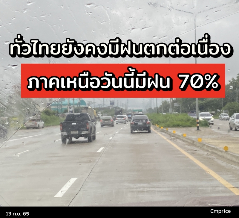 ทั่วไทยยังคงมีฝนตกต่อเนื่อง ภาคเหนือวันนี้มีฝน70%