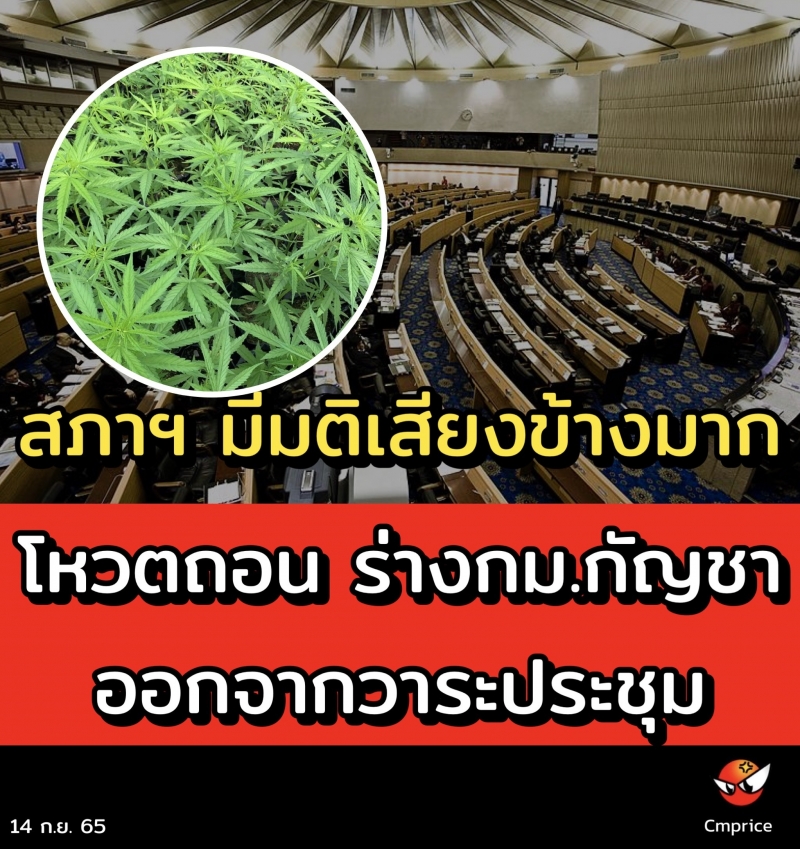 | • สภาฯ มีมติเสียงข้างมาก โหวตถอน ร่างกม.กัญชา ออกจากวาระประชุม |