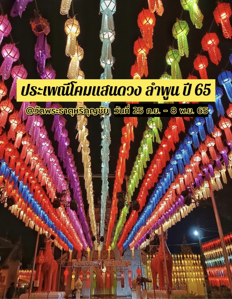 | • จังหวัดลำพูนกำหนดจัดงาน ประเพณีโคมแสนดวงที่เมืองลำพูน ปี 65 วันที่ 25 ก.ย.-8 พ.ย.65 นี้ |