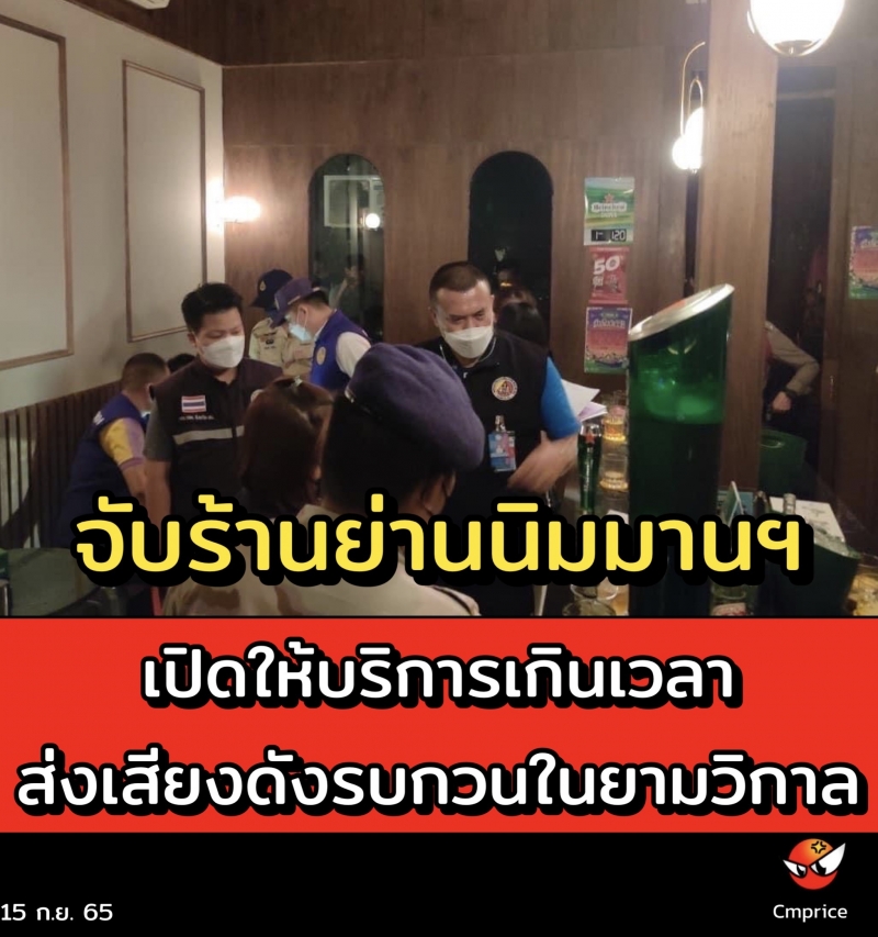 | • จับร้านย่านนิมมานฯ เปิดให้บริการเกินเวลา ได้รับร้องเรียนส่งเสียงดังรบกวนในยามวิกาล |