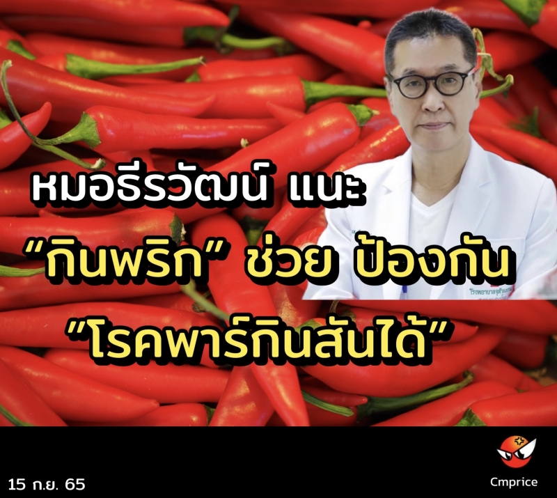 15 ก.ย. 2565 ศ.นพ.ธีระวัฒน์ เหมะจุฑา หัวหน้าศูนย์วิทยาศาสตร์สุขภาพโรคอุบัติใหม่ คณะแพทยศาสตร์ โรงพยาบาลจุฬาลงกรณ์ โพสต์เฟซบุ๊กระบุว่า กินพริกช่วยคุณได้ ป้องกันโรคพาร์กินสัน
