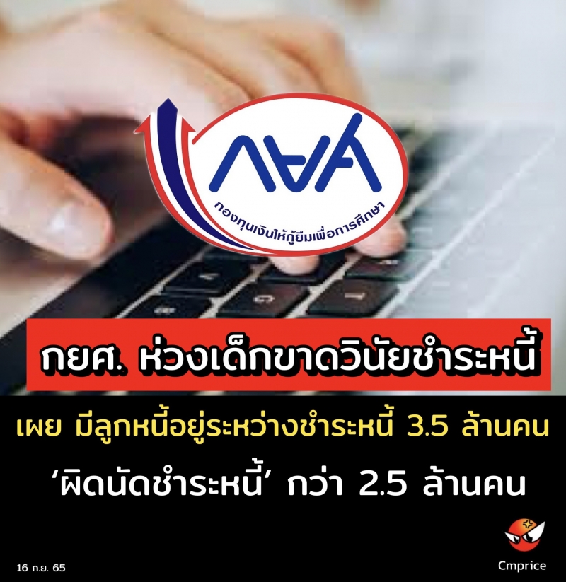 กยศ. ห่วงเด็กขาดวินัยชำระหนี้ เผย มีลูกหนี้อยู่ระหว่างชำระหนี้ 3.5 ล้านคน ในจำนวนนี้ ‘ผิดนัดชำระหนี้’ กว่า 2.5 ล้านคน คิดเป็นเงินต้นกว่า 9 หมื่นล้านบาท