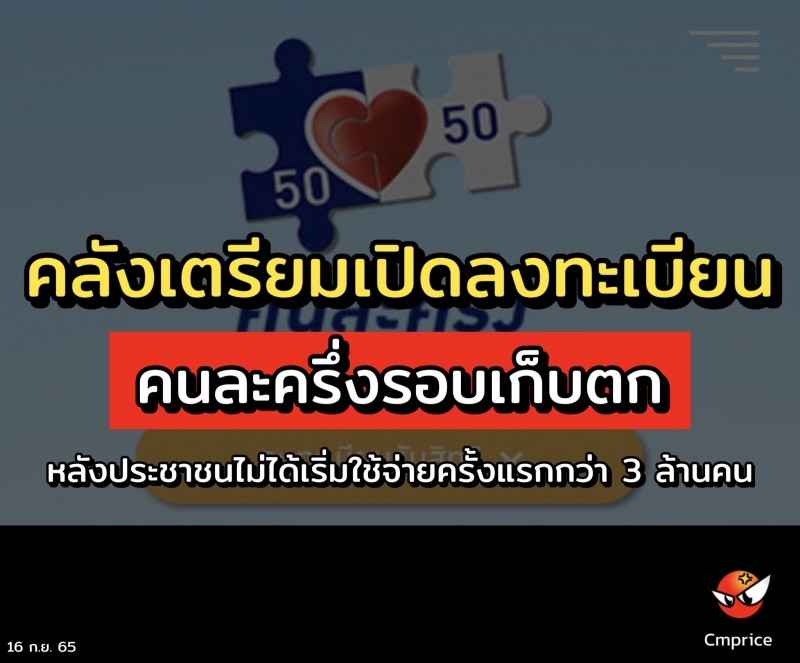 | • เตรียมเปิดลงทะเบียนคนละครึ่งรอบเก็บตก หลังประชาชนไม่ได้เริ่มใช้จ่ายครั้งแรกกว่า 3ล้านคน |