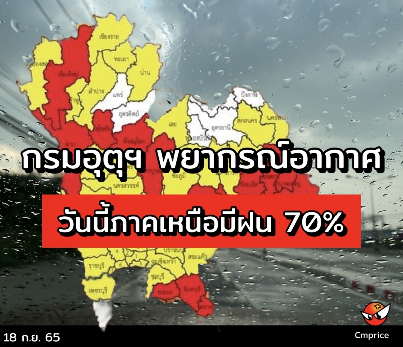 กรมอุตุนิยมวิทยา พยากรณ์อากาศ สภาพอากาศ18 ก.ย.65 "พยากรณ์อากาศ" 24 ชั่วโมงข้างหน้า บริเวณความกดอากาศสูงหรือมวลอากาศเย็นจากประเทศจีนแผ่ลงมาปกคลุมประเทศลาวตอนบนและประเทศเวียดนามตอนบน ส่งผลทำให้ร่องมรสุมเลื่อนลงมาพาดผ่านภาคเหนือ ภาคกลางตอนบน และภาคตะวันออกเฉียงเหนือของประเทศไทย เข้าสู่หย่อมความกดอากาศต่ำบริเวณประเทศลาวและเวียดนามตอนกลาง ประกอบกับมรสุมตะวันตกเฉียงใต้ที่พัดปกคลุมทะเลอันดามัน ประเทศไทย และอ่าวไทยมีกำลังปานกลาง