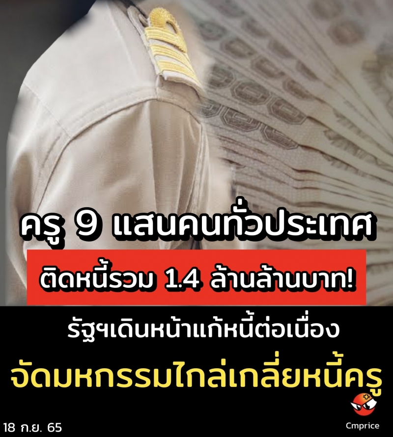 | • ครู 9 แสนคนทั่วประเทศติดหนี้รวม 1.4 ล้านล้านบาท! รัฐบาลเดินหน้าแก้หนี้ต่อเนื่องจัดมหกรรมไกล่เกลี่ยหนี้ครู |