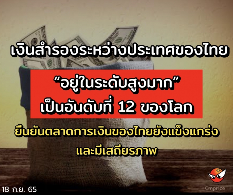 | • โฆษกรัฐบาลเผย เงินสำรองระหว่างประเทศของไทยอยู่ในระดับสูง มากเป็นอันดับที่ 12 ของโลก |