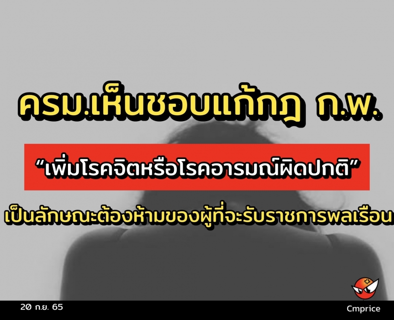 | • ครม.เห็นชอบแก้กฎ ก.พ. เพิ่มโรคจิตหรือโรคอารมณ์ผิดปกติ เป็นลักษณะต้องห้ามของผู้ที่จะรับราชการพลเรือน |