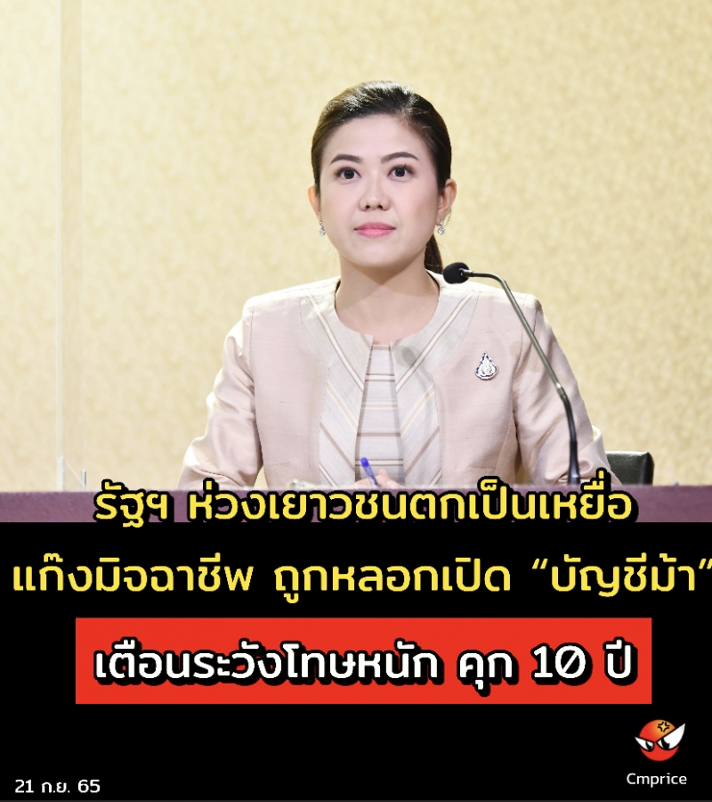 รองโฆษกรัฐบาล ห่วงเยาวชนตกเป็นเหยื่อแก๊งมิจฉาชีพ ถูกหลอกเปิด “บัญชีม้า” เตือนระวังโทษหนักติดคุก10ปี