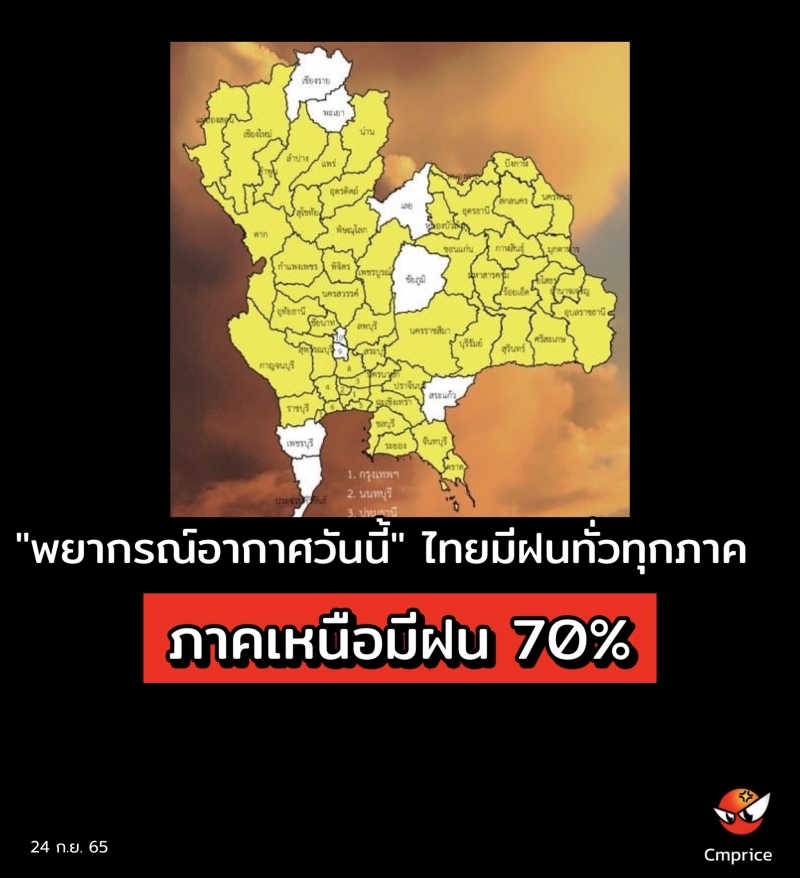 | • "พยากรณ์อากาศวันนี้" ไทยมีฝนทั่วทุกภาค ภาคเหนือมีฝน 70% |