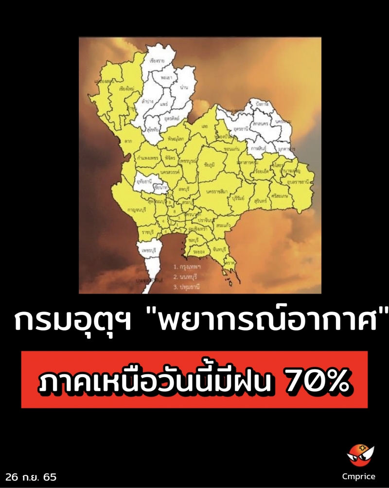 26 กันยายน 2565 "กรมอุตุนิยมวิทยา "พยากรณ์อากาศ" 24 ชั่วโมงข้างหน้า