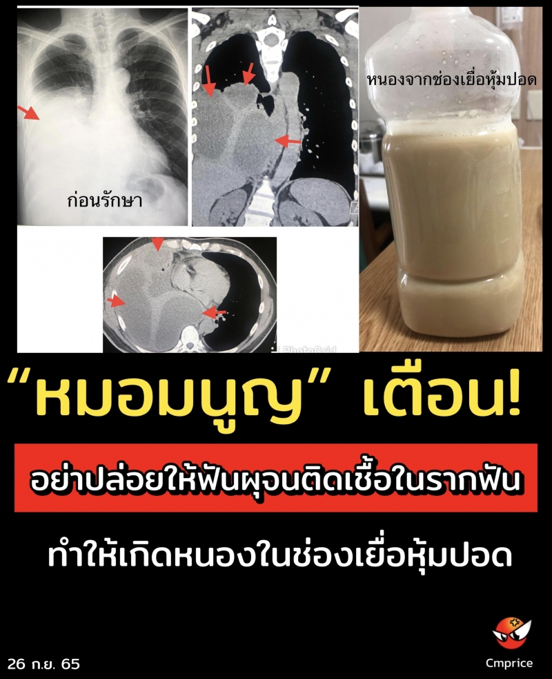 นพ.มนูญ ลีเชวงวงศ์ หรือ หมอมนูญ แพทย์เฉพาะทางด้านโรคระบบการหายใจ โรงพยาบาลวิชัยยุทธ โพสต์ข้อมูลให้ความรู้ ยกเคสเกี่ยวกับ ฟันผุจนติดเชื้อในรากฟัน ทำให้เกิดหนองในช่องเยื่อหุ้มปอด ดังนี้