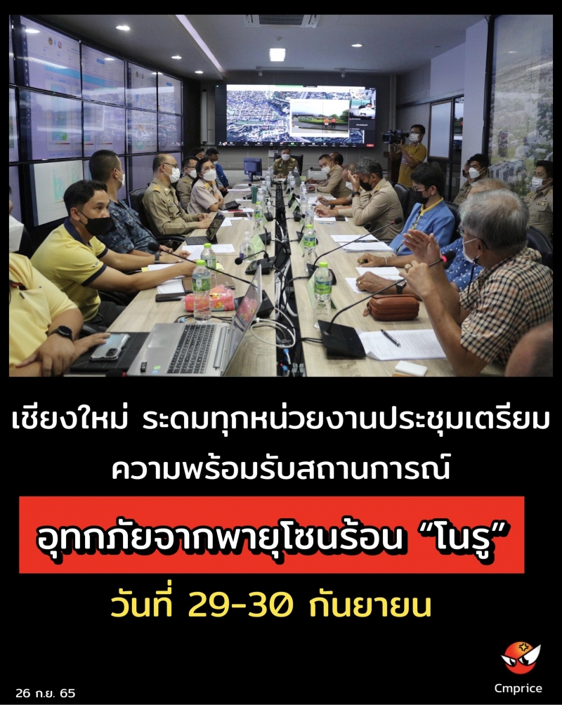 จังหวัดเชียงใหม่ ระดมทุกหน่วยงานประชุมเตรียมความพร้อมรับสถานการณ์อุทกภัยจากพายุโซนร้อน “โนรู” 29-30 กันยายน นี้ เน้นย้ำทุกอำเภอแจ้งเตือนประชาชนและติดตามข่าวสารอย่างใกล้ชิด