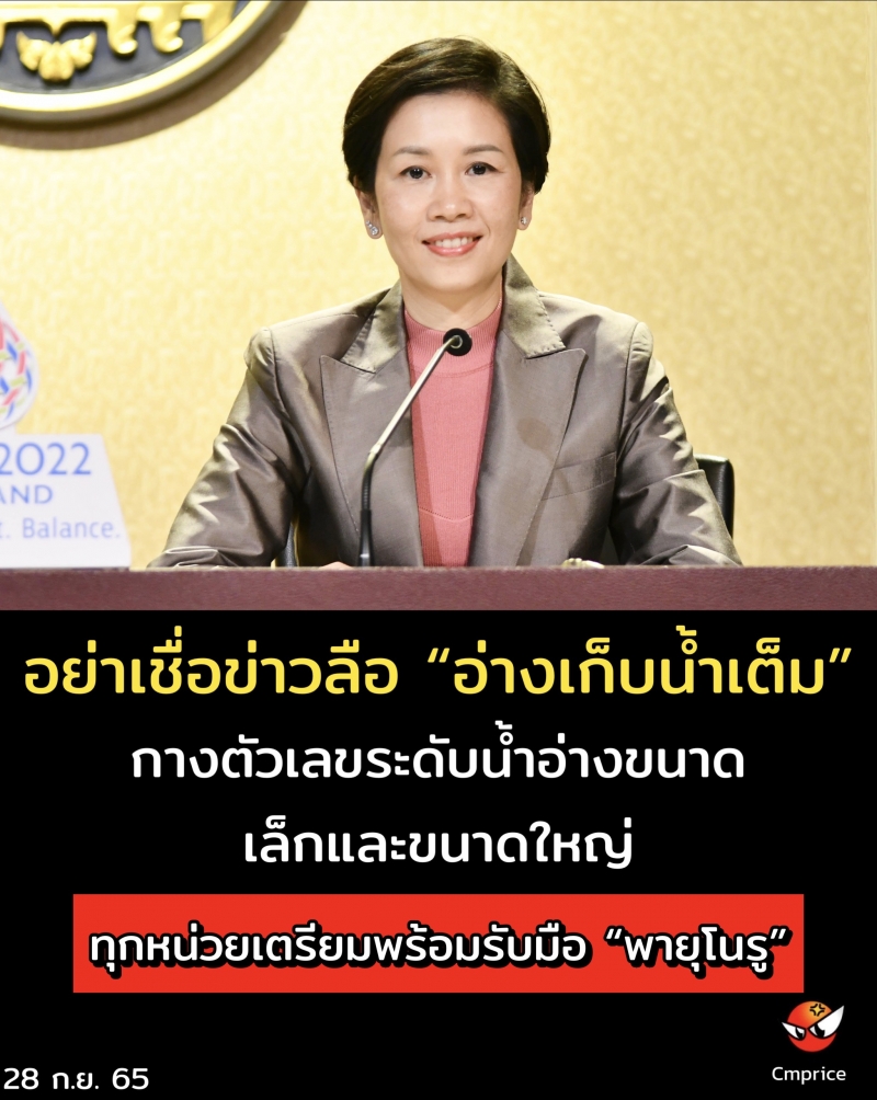 วันที่ 28 กันยายน 2565 นางสาวรัชดา ธนาดิเรก รองโฆษกประจำสำนักนายกรัฐมนตรี เปิดเผยว่า จากประกาศกรมอุตุนิยมวิทยาเตือน“พายุโนรู” ทำให้มีการเผยแพร่ข้อมูล “มีเขื่อนแตกหรือไม่สามารถเก็บกักน้ำได้อีกแล้ว” ผ่านสื่อโซเซียลจนเกิดความเข้าใจผิด จึงขอให้ประชาชนรับฟังข้อมูลข่าวสารการแจ้งเตือนและความเคลื่อนไหวของสถานการณ์จากหน่วยงานภาครัฐอย่างใกล้ชิด