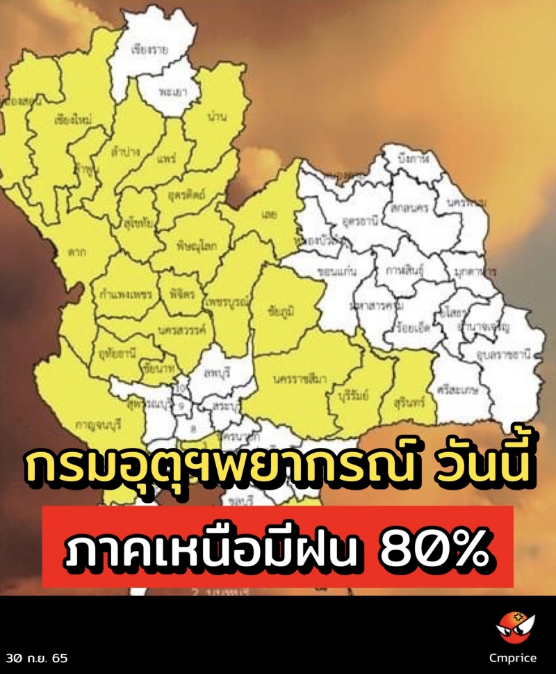 พยากรณ์อากาศ 24 ชั่วโมงข้างหน้า (30 ก.ย. 65): หย่อมความกดอากาศต่ำกำลังแรงปกคลุมบริเวณภาคเหนือตอนล่าง ภาคกลางตอนบน และภาคตะวันออกเฉียงเหนือ ประกอบกับมรสุมตะวันตกเฉียงใต้กำลังแรงพัดปกคลุมทะเลอันดามัน ภาคใต้ และอ่าวไทย ลักษณะเช่นนี้ทำให้ประเทศไทยมีฝนตกหนักบางแห่ง ในภาคเหนือ ภาคตะวันออกเฉียงเหนือ ภาคกลาง รวมทั้งกรุงเทพมหานครและปริมณฑล ภาคตะวันออก และภาคใต้ ขอให้ประชาชนในบริเวณดังกล่าวระวังอันตรายจากฝนตกหนักและฝนที่ตกสะสม ซึ่งอาจทำให้เกิดน้ำท่วมฉับพลันและน้ำป่าไหลหลาก โดยเฉพาะพื้นที่ลาดเชิงเขาใกล้ทางน้ำไหลผ่านและพื้นที่ลุ่มในระยะนี้
