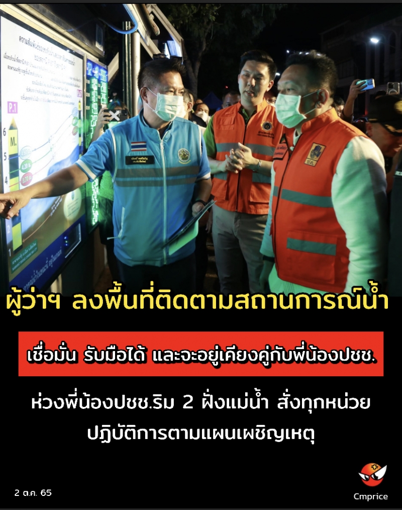 ค่ำวันนี้ (2 ต.ค. 65) นายนิรัตน์ พงษ์สิทธิถาวร ผู้ว่าราชการจังหวัดเชียงใหม่ พร้อมด้วย นายวรญาณ บุญณราช , นายวรวิทย์ ชัยสวัสดิ์ รองผู้ว่าราชการจังหวัดเชียงใหม่ และหน่วยงานที่เกี่ยวข้อง ลงพื้นที่ติดตามสถานการณ์น้ำในแม่น้ำปิงที่สถานี P.1 บริเวณสะพานนวรัฐ ภายหลังปริมาณน้ำเพิ่มสูงขึ้นอย่างต่อเนื่อง ท่ามกลางประชาชนที่มาเฝ้าสังเกตการณ์จำนวนมาก