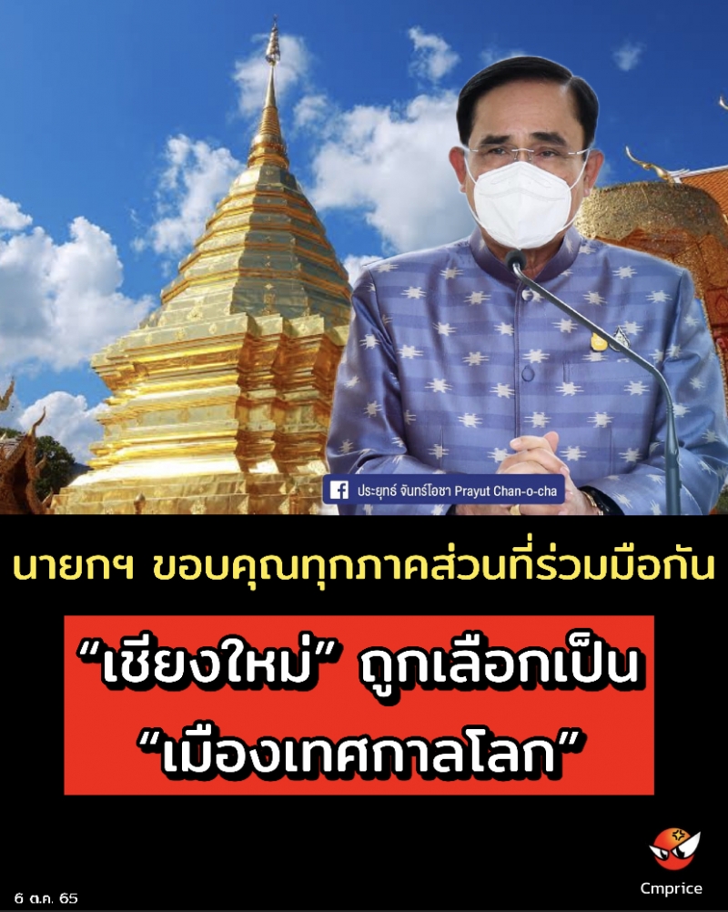 | • จ.เชียงใหม่ ถูกเลือกเป็น เมืองเทศกาลโลก นายกรัฐมนตรี ขอบคุณทุกภาคส่วนที่ได้ร่วมมือกันจนทำให้ จ.เชียงใหม่ได้รับเลือกในครั้งนี้ |