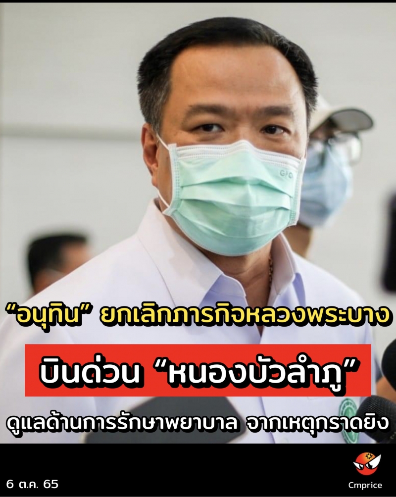 | • อนุทิน ยกเลิกภารกิจหลวงพระบาง บินด่วน หนองบัวลำภู ดูแลด้านการรักษาพยาบาล จากเหตุกราดยิง |