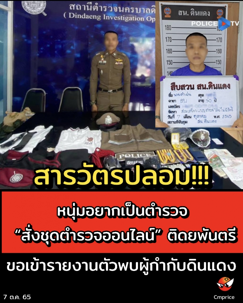 | • สารวัตรปลอม หนุ่มอยากเป็นตร. สั่งชุดออนไลน์ติดยศพันตรีขอเข้ารายงานตัวพบผู้กำกับดินแดง |