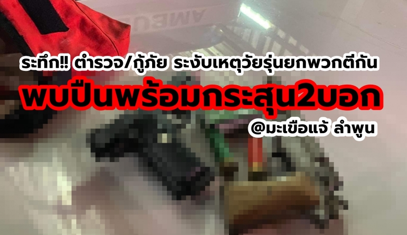 ระทึก!! ตำรวจ/กู้ภัย ระงับเหตุวัยรุ่นยกพวกตีกัน พบปืนพร้อมกระสุน2บอก! @มะเขือแจ้ ลำพูน