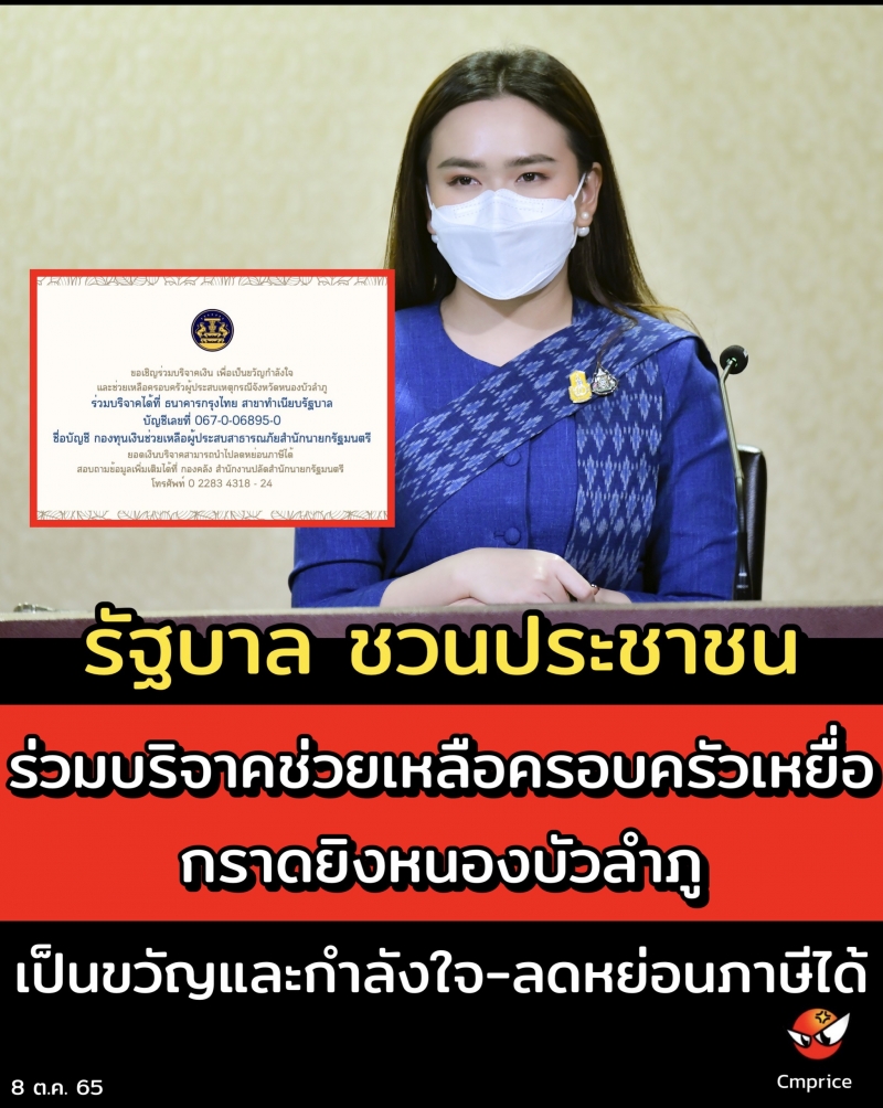 รัฐบาล ชวนปชช.ร่วมบริจาคช่วยเหลือครอบครัวเหยื่อกราดยิงหนองบัวลำภู