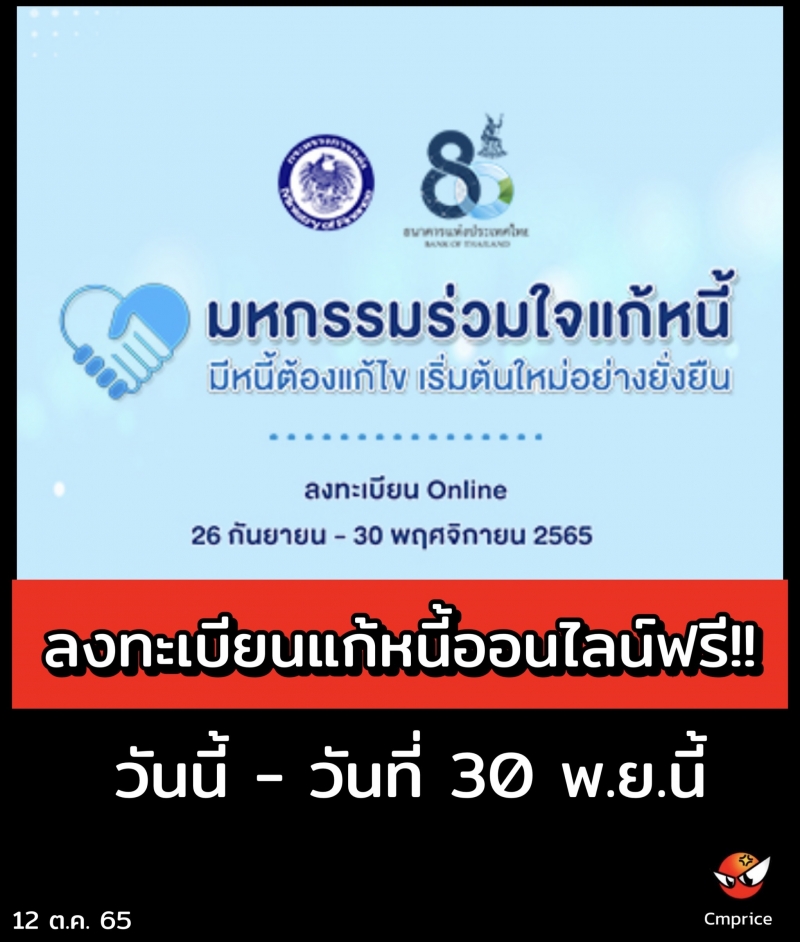 | • ลูกหนี้ลงทะเบียนแก้หนี้ออนไลน์ฟรี!! วันนี้ - วันที่ 30 พ.ย.นี้ ผ่านเว็บไซต์ |
