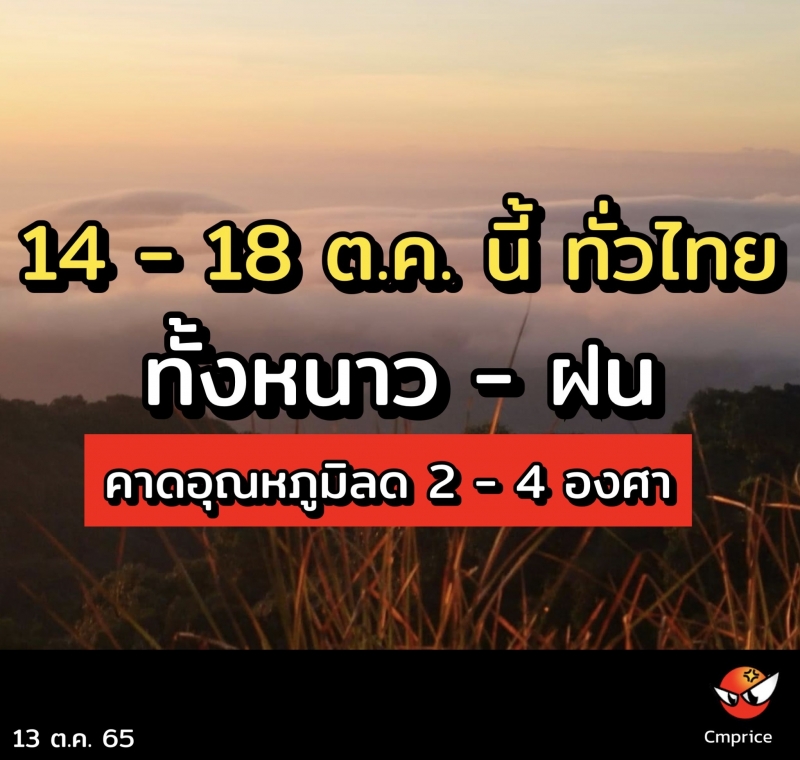 | • อุตุฯ เตือน 14 - 18 ต.ค. นี้ ทั่วไทยเจอทั้งหนาว - ฝน คาดอุณหภูมิลด 2 - 4 องศา ฝนหนักบางพื้นที่ |