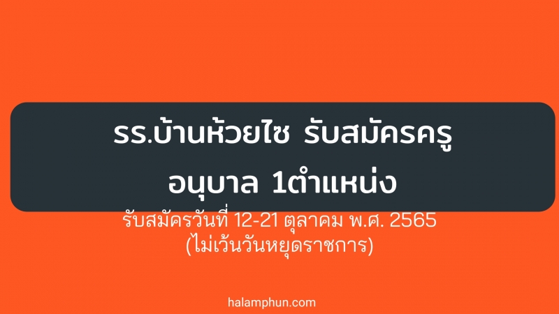 รร.บ้านห้วยไซ รับสมัครครูอนุบาล 1 ตำแหน่ง สมัครถึง21ต.ค.65