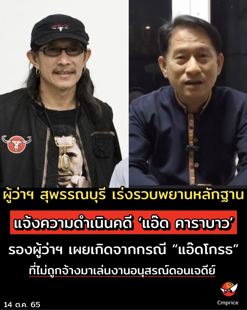 | • ผู้ว่าฯ สุพรรณบุรี เร่งรวบพยานหลักฐาน แจ้งความดำเนินคดี แอ๊ด คาราบาว |