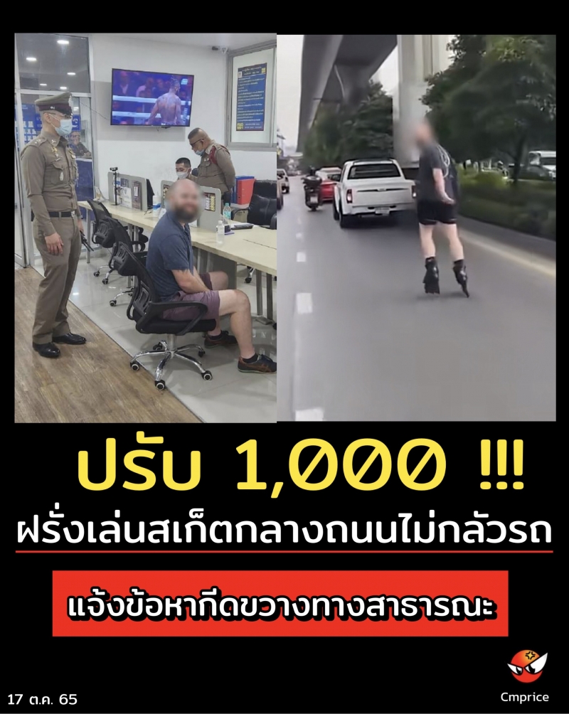| • ปรับ 1,000!!! ฝรั่งเล่นสเก็ตกลางถนนไม่กลัวรถแจ้งข้อหากีดขวางทางสาธารณะ |