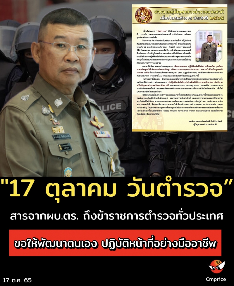 "เนื่องใน"วันตำรวจ"ประจำปี 2565 ได้เวียนมาบรรจบครบรอบอีกวาระหนึ่ง ผมขอส่งความปรารถนาดี มายังข้าราชการตำรวจทุกท่านด้วยความจริงใจ