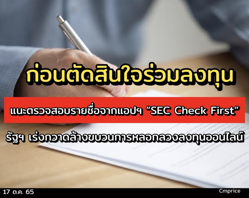 | • ก่อนตัดสินใจร่วมลงทุน แนะตรวจสอบรายชื่อจากแอปฯ SEC Check First |
