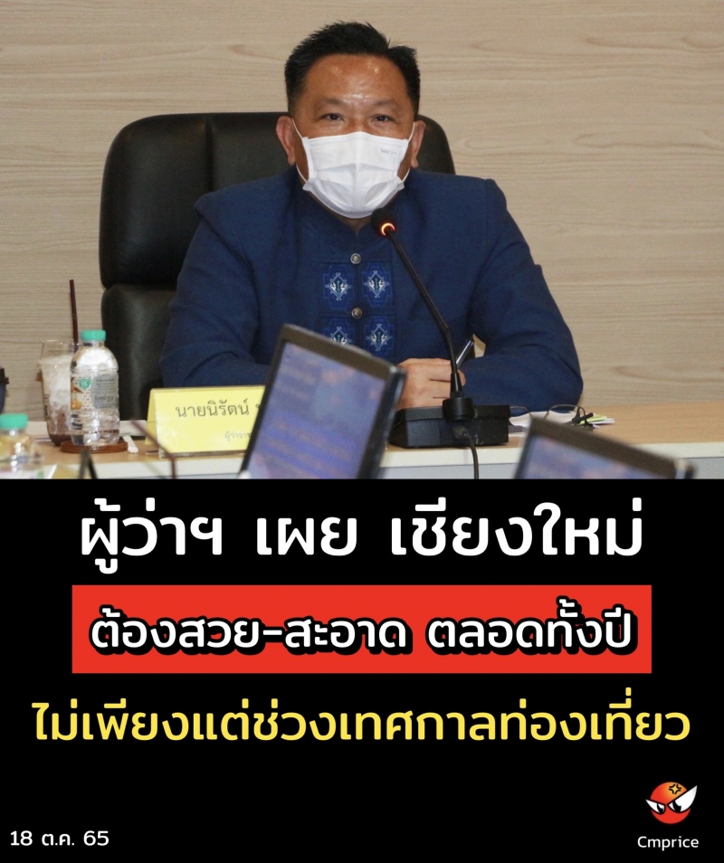 | • ผู้ว่าฯ เชียงใหม่ เผย เชียงใหม่ จะต้องสวยและสะอาด ตลอดทั้งปี ไม่เพียงแต่ช่วงเทศกาลท่องเที่ยว |