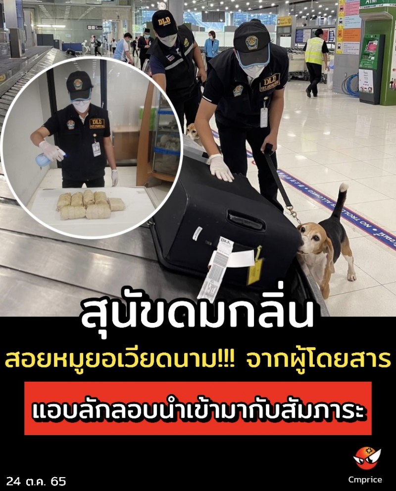 | • สุนัขดมกลิ่นสอยหมูยอเวียดนาม!!! จากผู้โดยสารแอบลักลอบนำเข้ามากับสัมภาระ |