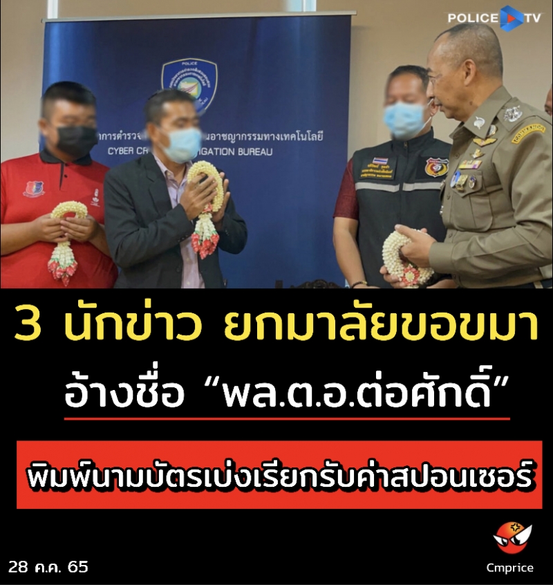 | • 3 นักข่าว ยกมาลัยขอขมา อ้างชื่อ พล.ต.อ.ต่อศักดิ์ พิมพ์นามบัตรเบ่งเรียกรับค่าสปอนเซอร์ |