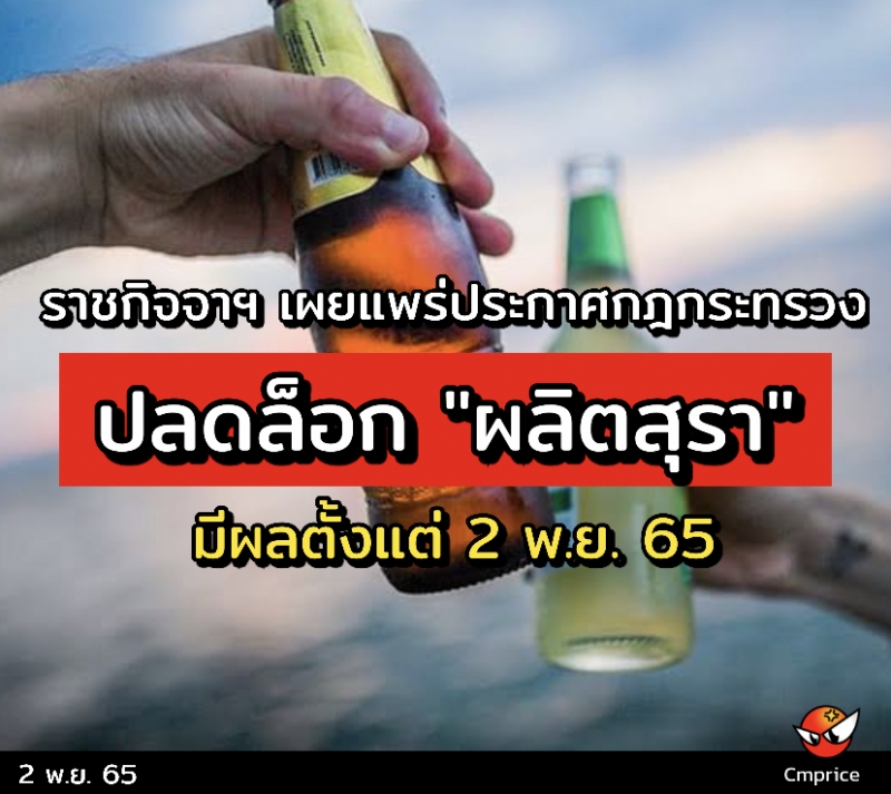 | • ราชกิจจาฯ เผยแพร่ประกาศกฎกระทรวง ปลดล็อกการ "ผลิตสุรา" มีผล 2 พ.ย. 65 |