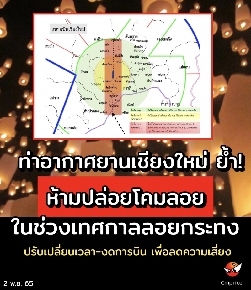 | • ท่าอากาศยานเชียงใหม่ ย้ำ ห้ามปล่อยโคมลอย ในช่วงเทศกาลลอยกระทง |