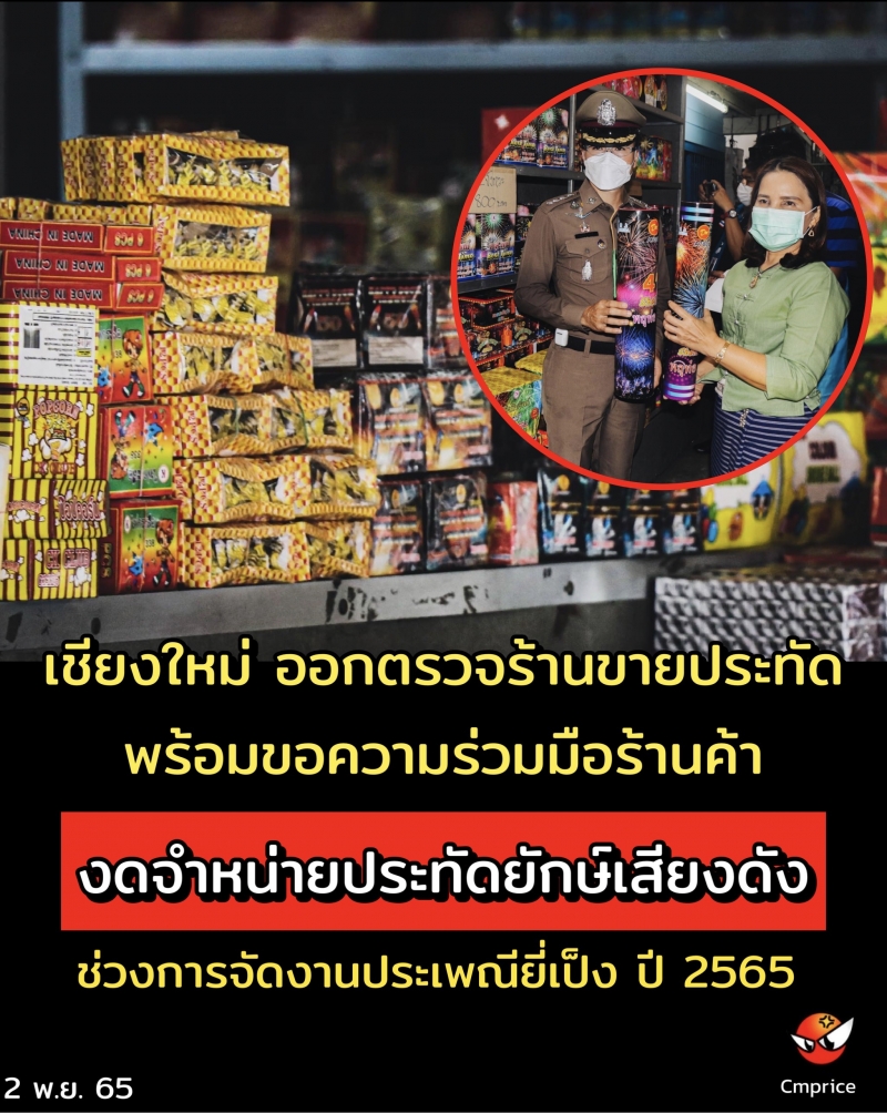 เทศบาลนครเชียงใหม่ ออกตรวจร้านจำหน่ายประทัด พร้อมขอความร่วมมือร้านค้า งดจำหน่ายประทัดยักษ์เสียงดังและเป็นอันตราย ช่วงการจัดงานประเพณีเดือนยี่เป็งเชียงใหม่ ประจำปี 2565