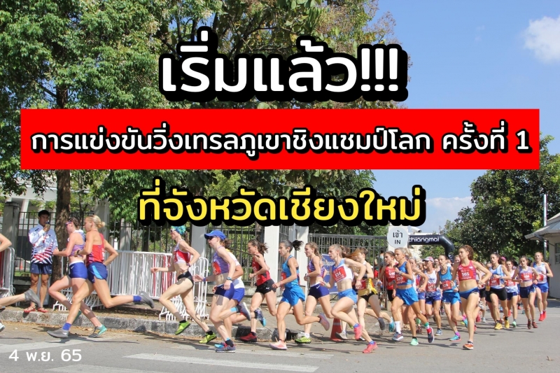 การแข่งขันวิ่งเทรลภูเขาชิงแชมป์โลก ครั้งที่ 1 ที่ จังหวัดเชียงใหม่ เริ่มปล่อยตัวนักวิ่งชุดแรกแล้วในประเภท Uphill ระยะทาง 8.5 กิโลเมตร และประเภทบุคคลทั่วไป ระยะทาง 11 กิโลเมตร