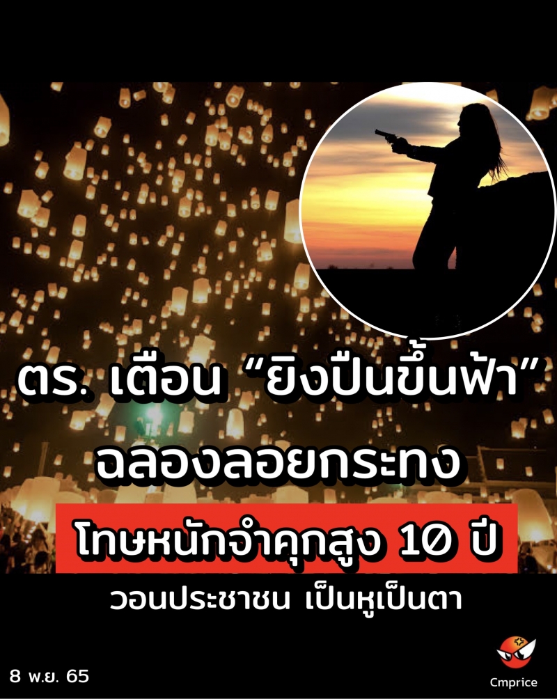 เมื่อวันที่ 7 พฤศจิกายน 2565 ที่สำนักงานตำรวจแห่งชาติ (ตร.) พล.ต.ต.อาชยน ไกรทอง โฆษก ตร. ออกมาเตือน“การยิงปืนขึ้นฟ้า” เฉลิมฉลองเทศกาลลอยกระทง ก่อให้เกิดอันตรายถึงชีวิต และผิดกฎหมาย สร้างความเดือดร้อนให้คนอื่น